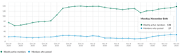 In the graph on the below starting June 10, you can see how Slack activity has been growing steadily but dropped significantly during the week project lead Douwe Maan was out on vacation, with a low point on October 20. Fortunately, it recovered just as quickly once he returned!